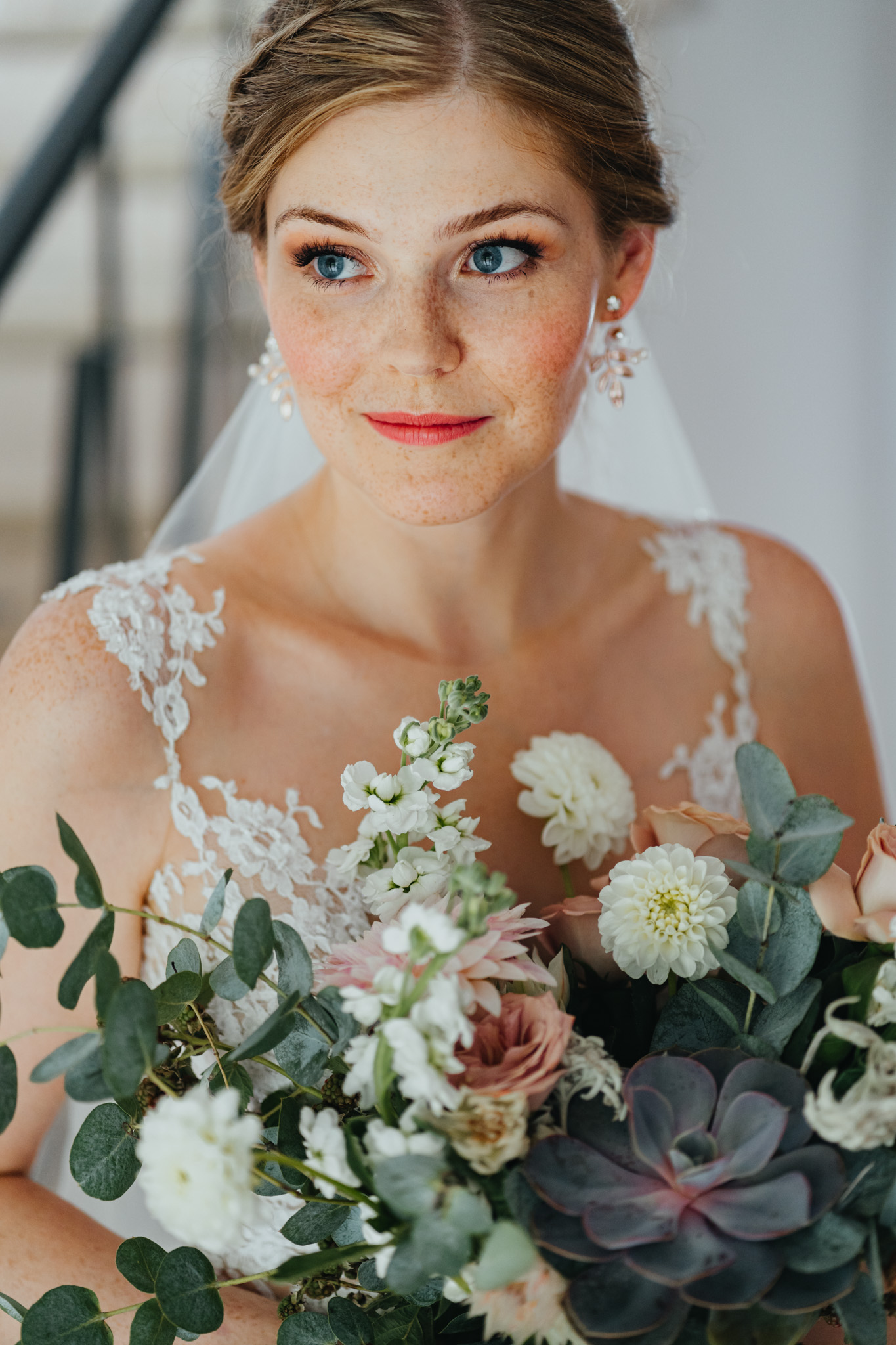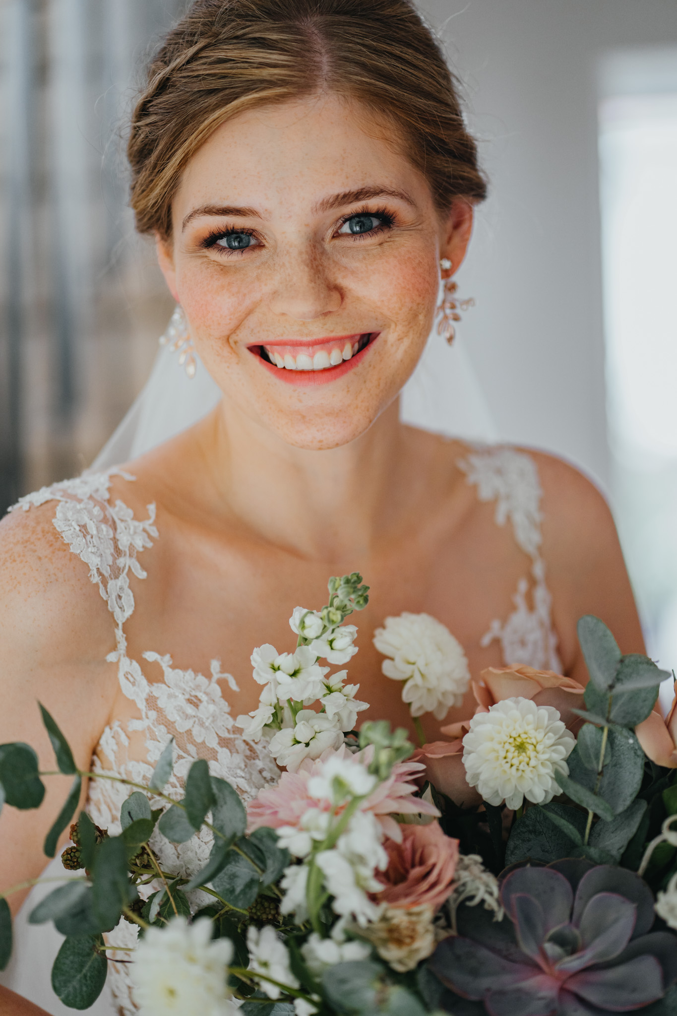 Das Braut-Make-up habe ich darauf ausgelegt, ein frisches und natürliches Erscheinungsbild zu verleihen. Die wunderschönen Sommersprossen der Braut sollten unbedingt sichtbar bleiben.