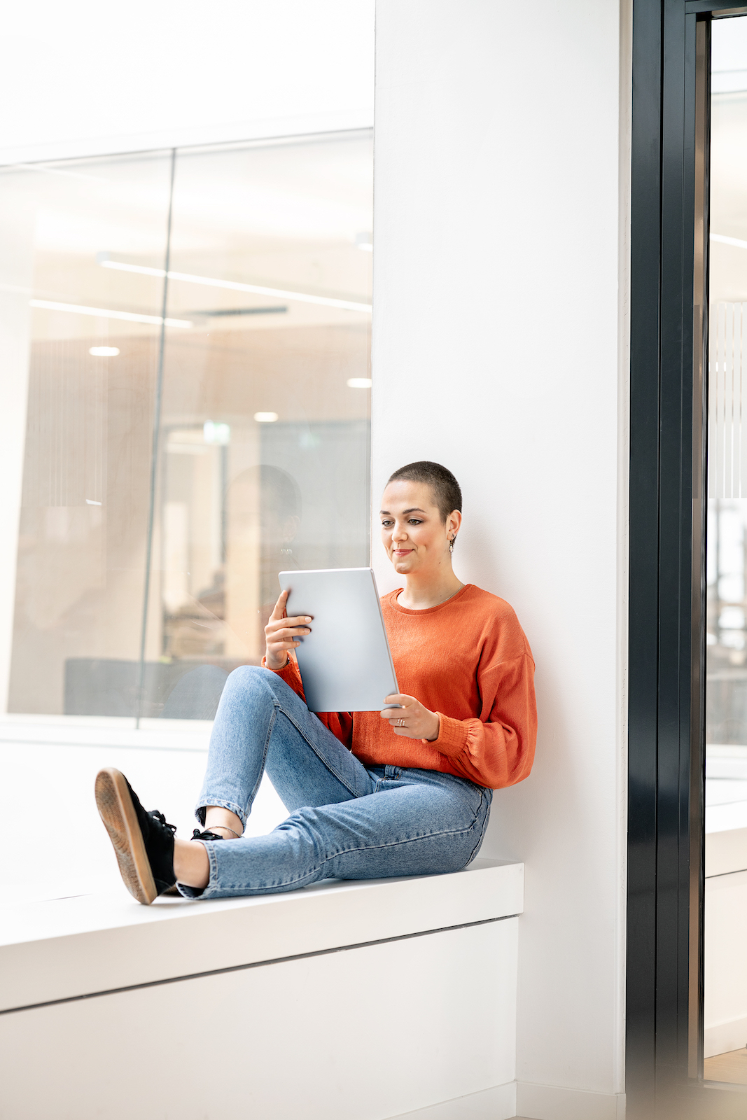 Mit einem aufmerksamen Blick für Details sorgte ich dafür, dass Haare, Make-up und Kleidung stets perfekt saßen, ohne den Flow der Produktion am Set zu beeinträchtigen – Natürliches Business-Styling in Düsseldorf