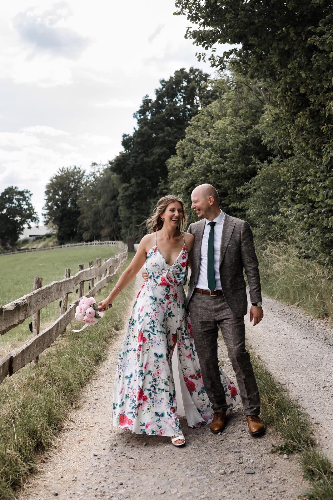 Der Wunsch der Braut bei dieser Standesamt-Frisur waren halboffene sanfte Wellen und dazu passend ein natürliches Make-up, angelehnt an die Farben des Kleides.