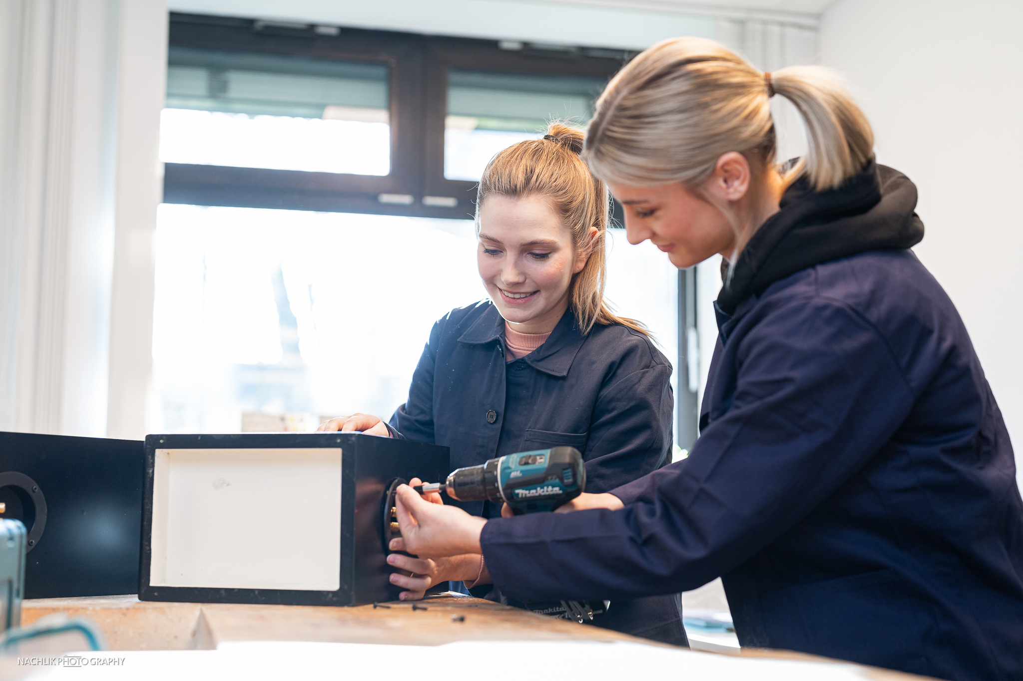 Während des gesamten Shootings achtete ich als begleitender Make-up Artist auf regelmäßiges Auffrischen von Lippen und das Reduzieren unerwünschten Glanzes. Die Frisuren passte ich in jedem Set neu an, stellte sicher dass der Look den Anforderungen der Arbeitssicherheit gerecht wurde und gleichzeitig gepflegt und ansprechend aussah.